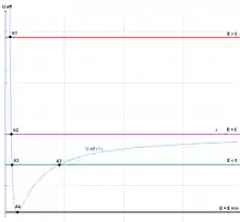 Effective potential. E > 0: hyperbolic orbit (A1 as pericenter), E = 0: parabolic orbit (A2 as pericenter), E < 0: elliptic orbit (A3 as pericenter, A3' as apocenter), E = Emin: circular orbit (A4 as radius). Points A1, ..., A4 are called turning points.