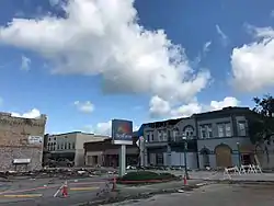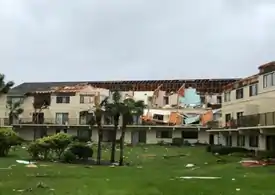 A total of six homes experienced slight impacts on Bahia Honda Key.[49] Additionally, dozens of mobile homes were overturned at an RV park.[62] Fisherman's Community Hospital in Marathon was completely destroyed, and as of 2019 is being rebuilt.[63] Bahia Honda State Park was devastated, with bathrooms, campgrounds, parking lots, pavilions, and streets destroyed or washed away. The nature center and the bayside cabins were deroofed and suffered extensive water damage. Much of the park also experienced beach erosion.[64] On Ohio Key, a number of RVs were overturned at the Sunshine Key RV Resort and Marina, with several rendered uninhabitable.[65] Overall, 397 structures were inflicted major damage.[49] On Pigeon Key, which consists entirely of the Pigeon Key Historic District, every structure was damaged, with one building being knocked off its foundation. A dock was also destroyed.[66]