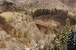 The Eiffel Bridge is a bridge over the Tsemistskal river, on the Borjomi–Bakuriani railway near the town of Tsagveri.