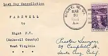 Letter postmarked in Eight at the time of post office's closure.
