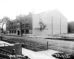 The Eighth Regiment Armory, located in the Black Metropolis-Bronzeville District of Chicago, Illinois, was the first armory in the United States built for an African-American military regiment, known as the "Fighting 8th".[2] The building later was used by a division of the Illinois National Guard, and during World War I was incorporated into the US Infantry. After closing the armory in the early 1960s, it became the South Central Gymnasium. In 1999, following an extensive renovation, it was reopened as a public high school military academy.[3] The restoration and conversion into a school has been recognized by the National Trust for Historic Preservation.[4]
