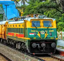 ![]() Arakkonam based WAP-4 (in old ICF Shatabdi Express livery) hauling Guruvayur Express | |
