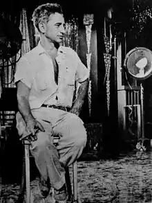 Kazan's first national success came as a New York theatrical director.[29] Although initially he worked as an actor on stage, and told early in his acting career that he had no acting ability, he surprised many critics by becoming one of the Group's most capable actors. In 1935 he played the role of a strike-leading taxi driver in a drama by Clifford Odets, Waiting for Lefty, and his performance was called "dynamic", leading some to describe him as the "proletarian thunderbolt".[23]: 23