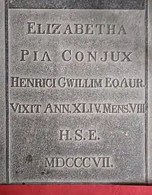 Elizabeth married Henry Gwillim (1759 – 22 September 1837) on 27 May 1784, in London at St. Bride’s Church on Fleet Street. Henry was a lawyer and judge whose family was also from Hereford. Information on their children is inconclusive: London archives document the burial of an infant on 13 January 1786, also named Elizabeth, who was born 31 March 1785 and baptized 20 June 1785 at St. Bride's.[2] Other sources familiar with Gwillim’s life note another daughter named Ann, baptized 10 June 1787, and a son Henry, baptized 11 October 1789.[3] These two children were born in Sarnesfield in Hereford[4] and Henry's burial is recorded in nearby Kinnersley on 28 February 1790.[5] Elizabeth describes herself as childless in a letter to her sister Hetty written in 1806 from Madras,[6] and none of her preceding letters mention children.