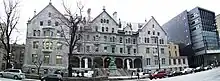 The Elizabeth Wirth Music Building (formerly the New Music Building) is one of two buildings belonging to the Schulich School of Music at McGill University, the other being the Strathcona Music Building directly adjacent to it. The building is located at 527 Sherbrooke Street West, on the corner of Sherbrooke and Aylmer Street in Montreal, Quebec and was designed in 2005 by the Montreal-based architectural firm Saucier + Perrotte.[3] The building officially opened in 2006,[1] and its construction was made possible through a donation of C$20 million from McGill alumnus Seymour Schulich to the Schulich School of Music.[2] The building was officially inaugurated as the Elizabeth Wirth Music Building on April 30, 2015, after the School received a donation of C$7.5 million from McGill alumna Elizabeth Wirth.[4][5]