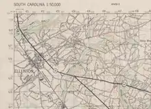 In 1950 the town was acquired by the U.S. Atomic Energy Commission as part of a site for development of the Savannah River Plant, a nuclear plant. All the residences and businesses were acquired, and two new towns, New Ellenton, South Carolina and Jackson, South Carolina, were built. The plant was between the current CSX railroad and the current SC Highway 125, Upper Three Runs Creek, and Four Mile Branch. SC Highway 125 was U.S. Highway 278 in the 1950s.