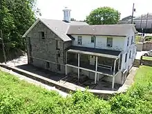 The jail is unoccupied with most ironwork removed on a quarter-acre site. The slate roof was repaired with a temporary shingle roof. Asbestos removal costs are a contributing factor to the reluctance to maintain the historic structure.[17] In 2014 and 2015, Ellicott City Jail and the Hiene House was placed on the Preserve Howard top ten most endangered list due to walkway and parking lot construction plans.[18][19]