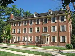 Elliott and Stoddard Halls are the two oldest remaining buildings on Miami University's Oxford Ohio campus today. Built in 1825 (Elliott) and 1836 (Stoddard), they were designed in the Federal style and modeled after Connecticut Hall at Yale University. They continue to be used as dormitory buildings, making them the two oldest college dormitories still in use in Ohio. They were the original dormitories on the campus and were built to house students who attended classes at Miami's campus.[2] They have both been through a number of renovations, most recently in 2011.[3] The dorms are located in between the two academic quads located in the center of Miami's campus. They face another landmark on the campus, the Miami University seal. Over time they have become landmarks on the campus and are considered two of the most prestigious dorms to live in.[4][5] They are also listed on the National Register of Historic Places. Today, they house students in the Scholar Leaders program.[2][6][7] The buildings are named for early Miami professors Charles Elliott and Orange Nash Stoddard.