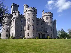 When Captain Gordon died without legitimate issue in 1878, Emily Gordon inherited the estates.[1] Her second husband was Sir Reginald Archibald Edward Cathcart (d. 1916) whom she married in late 1880 at St George's Hanover Square, London.[1] He was the sixth baronet of Cathcart, succeeding to the title in 1878. The Cathcart family seat was Killochan Castle near Girvan in Ayrshire but the couple lived mainly in Titness Park, Sunninghill, Berkshire.[4][5][6]