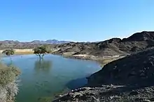 The city of Ras Al Khaimah has two main areas - the Old Town and Nakheel - on either side of a creek that is home to mangroves and is framed by the North-Western Hajar Mountains.[5] The emirate also consists of several villages and new gated residential developments, such as Al Hamra Village and Mina Al Arab. The emirate is served by Ras Al Khaimah International Airport. Its geography consists of a northern part (where Ras Al Khaimah City and most towns are situated) and a large southerly inland exclave (near the Dubai exclave of Hatta), and a few small islands in the Persian Gulf. Ras Al Khaimah has the most fertile soil in the country, due to a larger share of rainfall and underground water streams from the Hajar Mountains, which overlook the city on the landward side.[7]