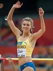On 1 July 2010 Emma Green improved her personal best to 1.98 m when she won at the Sollentuna GP, beating her previous best which had lasted almost five years.[1] Only one month later, on 1 August 2010, at the 2010 European Championships in Barcelona, she improved her personal best twice over within 5 minutes; first she jumped 1.99 and then just minutes later she jumped 2.01. This was her first time over the two-metre mark and was worth a European silver medal behind Blanka Vlašić – her first continental medal. She won the Folksam Grand Prix in Gothenburg later that month, jumping 1.95 m.[2]