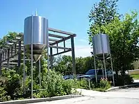 Empire Towers consists of two stainless steel grain silos standing tall on four poles. The tops of the silos are capped off with designs that are similar to those found on Royal Guard helmets.[1][2]