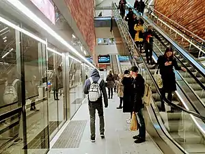 Enghave Plads station is an underground Copenhagen Metro station located at Enghave Plads in the Vesterbro district of Copenhagen, Denmark. The station is on the City Circle Line (M3), between Copenhagen Central Station and Frederiksberg Allé, and is in fare zone 1.[1] Nearby landmarks include the music venue Vega, Enghave Park and the shopping and restaurant street Istedgade.