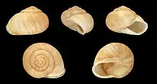 ![]() Five views of a cream-coloured shell of Eobania vermiculata |