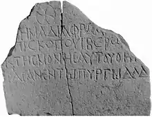 The Epitaph of Samuel (Georgian: სამუელის ეპიტაფია, romanized: samuelis ep'it'apia) is an Ancient Greek limestone tombstone slab epitaph inscription which was discovered in 1934, in the monastic cemetery of the Byzantine period, at the YMCA area in Jerusalem.[1][2]