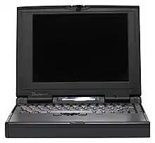 Epson used Cyrix's microprocessors exclusively for the ActionNote. The first laptop in the series, the ActionNote 4SLC-25, was released in April 1993 and featured a 486SLC with a clock speed of 25 MHz,[9] later bumped to 33 MHz and 50 MHz.[10] The ActionNote 4000, released in July 1993, sported a subnotebook form factor and had a 486SLC clocked at 33 MHz.[5] In February 1994, Epson introduced the 500C and 700 series ActionNotes. The former introduced a color display to the series with a passive-matrix LCD and had a 50 MHz 486SLC2, while the latter featured Cyrix's 486DX at 33 MHz. Though technically clocked slower than the 500C, the 700 machines actually were more powerful, owing to the true 32-bit nature of that processor.[11] Epson followed this up with the 766 series, the first laptop to offer Cyrix's 66-MHz 486DX2.[12]