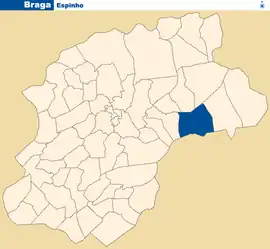 Espinho is a Portuguese freguesia ("civil parish"), located in the municipality of Braga. The population in 2011 was 1,181,[1] in an area of 4.48 km².[2] The Sameiro Sanctuary is situated in Espinho.