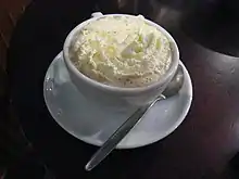 Espresso con panna, which means "espresso with cream" in Italian, is a single or double shot of espresso topped with whipped cream.[1] In France and in the United Kingdom it is known as café viennois.[2]