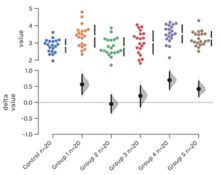 - ↑ Ho, Joses; Tumkaya, Tayfun; Aryal, Sameer; Choi, Hyungwon; Claridge-Chang, Adam (2018). "Moving beyond P values: Everyday data analysis with estimation plots". doi:10.1101/377978.