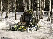 The Battle of Puutlipalu Bunker (Estonian: Puutlipalu lahing) took place in Puutli, Võru County on March 29, 1953, when KGB officers raided a bunker occupied by Forest Brothers at 9 am. The siege lasted almost three hours. When the Forest Brothers were wounded, they set off their grenades to prevent them from being used by KGB forces. Eight Forest Brothers, Richard Vähi, Karl Kaur, August Kuus, August Kurra, Leida Grünthal, Endel Leimann, Lehte-Kai Ojamäe, and Ilse Vähi, were killed in the battle.[10]