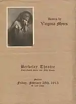 What started out as private performances in the Myers small studio for friends and art collectors ("millionaires sitting in tears on ironing boards"[5]), Virginia's performances soon demanded better and larger locations. In spite of having limited financial resources to draw from, Ethel took on all management and organization of Virginia's blossoming career. She organized a series of recitals throughout New York City, booking theatres, handling contracts, and coordinating costumes, set design, musicians, publicity, and the printing of tickets and programs.