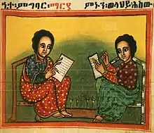 Early 18th century manuscript illumination from Aksum showing two scribes.