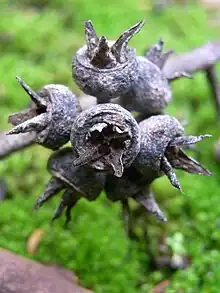| Fruit (gumnuts) of the Wollemi stringybark in Yengo National Park, Australia | |