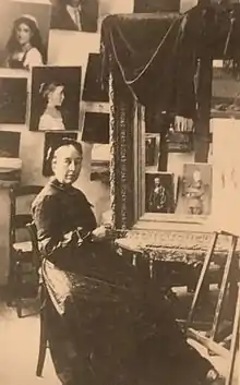 It was near there, in Calais, that she took her first art lessons from a local artist named Crocher.[1] She then went to Paris to continue her studies but, at that time, the École des Beaux-arts did not accept female applicants, so she attended the Académie Julian, where she studied with William Bouguereau.[1][2] Later, she took private lessons from Léon Cogniet. In 1877, she exhibited her portrait of Cogniet at the Salon, which brought her numerous commissions. The following year, she participated in the Exposition Universelle.[1]
