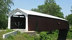 Eugene Covered Bridge, also known as County Bridge No. 75, is a historic Burr Arch Truss covered bridge located in Eugene Township, Vermillion County, Indiana. It was built in 1873, and is a single span covered timber bridge. It measures 180 feet long and 16 feet wide. The bridge spans the Big Vermilion River.[2]:5