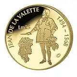 | In 2007, the Central Bank of Malta issued the 'La Valette' commemorative coin as the last gold coin denominated in Maltese lira. The obverse of the coin shows the Emblem of Malta with the year of issue 2007. The reverse depicts Grandmaster La Valette with the dates of his birth and death (1494–1568). These coins are being issued under the Europa Programme 2007 with the theme "European Realisation". The "Europa Star", the official logo of this programme, is also shown on the reverse. This coin was designed by Maltese engraver Mr Noel Galea Bason and has been minted at the Royal Dutch Mint. | ||||