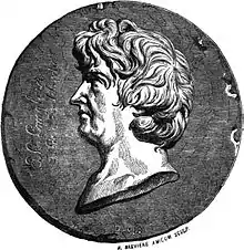 Eustache-Hyacinthe Langlois was born at Pont de l'Arche in Normandy on 3 August 1777. His father, André-Girard Langlois, was an advisor to the king and Master of Forestry. Although he showed early interest in art, Eustache-Hyacinthe seemed destined for a career in the administration.[3] However, the French Revolution broke out on 1789 and his father was forced to emigrate to escape lawsuits. Langlois was imprisoned, but was released through the intervention of Jacques-Charles Dupont de l'Eure. In 1793 he began to study art at the École de Mars in Paris under the painter Jacques-Louis David. In 1794 he was conscripted into the army, but managed to obtain his freedom with the help of friends and received his final discharge from Napoleon's wife Joséphine de Beauharnais. In 1798 he became a pupil of Anicet Charles Gabriel Lemonnier, but there was friction between master and pupil and he returned to David.[1]