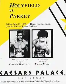 Evander Holyfield vs. Rickey Parkey was a professional boxing match contested on May 15, 1987 for the WBA and IBF cruiserweight title.