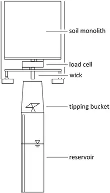 Evapotranspiration can be measured directly with a weighing or pan lysimeter. A lysimeter continuously measures the weight of a plant and associated soil, and any water added by precipitation or irrigation. The change in storage of water in the soil is then modeled by measuring the change in weight. When used properly, this allows for precise measurement of evapotranspiration over small areas.