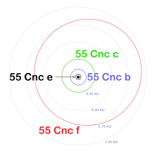 - ↑ Schneider, J. (2011). "Notes for star 55 Cnc". Extrasolar Planets Encyclopaedia. Archived from the original on 5 May 2012. Retrieved 26 September 2011.