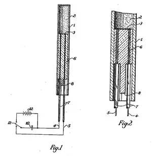 Image from the exploding-bridgewire detonator patent. Fig. 2 is a detail of Fig. 1.