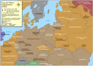 - ↑ Hook, Adam and Short, Neil (2010) The Führer’s Headquarters: Hitler’s command bunkers 1939–45 Osprey Publishing. p.24 f. ISBN 1846035821,