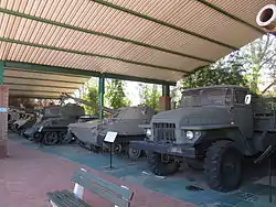Line up of decommissioned FAPLA combat vehicles in the South African National Museum of Military History: Ural-4320, PT-76, and T-34-85 tank.