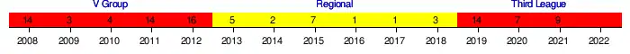 | 2022–23 | North-West Third League, 16th (relegated) | ||