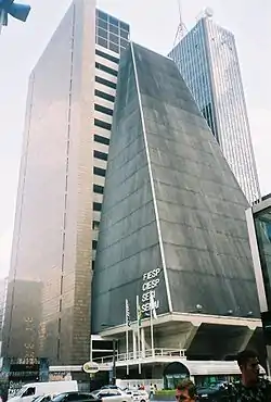 The FIESP's building headquarters is one of the city's major architectural landmarks and one of the main attractions on Paulista Avenue due to its pyramid shape. The building is 325 feet high and is one of the largest buildings on the Avenue. The building was built by Rino Levi's architectural firm in 1979. In 1998, the building was redesigned by the architect Paulo Mendes da Rocha to include the construction of a cultural center on the ground floor.[24]