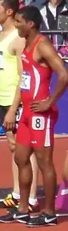 ![]() Before the start of heat 4 of the 100 m at the 2012 Summer Olympics | |