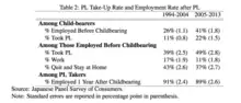 When associated with choices between home-work responsibilities, a mother's leisure and productivity of “human capital” is in jeopardy since it falls with the aging of a child. “In response to concerns about the falling fertility rate, the Ministry of Health and Welfare launched an emergency five-year plan in 1994 to improve daycare services, which was broadened in 1995 to a ten year plan pursued in conjunction with the Labour, Construction, and Education Ministries and named the [‘Angel Plan’]”.[29] The subsidies offer ‘administrative guidance’ in the span of 1-year leave to withhold job protection according to childbirth situation.