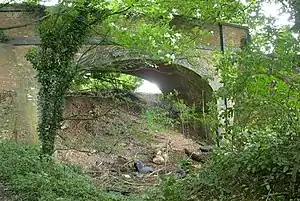 Farringdon Halt was an intermediate station on the Meon Valley line which ran from Alton to Fareham, England during the 20th century. A goods yard for loading agricultural produce was already sited there, and in 1930 a short wooden platform of one coach-length was built to serve the village.[1] It opened on 1 May 1931, and from 1 May 1932 until 8 July 1934 was named Faringdon Platform, before reverting to the original name of Farringdon Halt.[2]