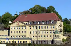 In cooperation with Larvik Bad the local brewery Vestfold bryggeri started bottling mineral water under the brandname of "Salus". Bottling commenced on August 16, 1907, making it the oldest brand of mineral water in Norway. In 1912 a new factory was initiated, by the architects Christian Morgenstierne and Arne Eide. It was expanded in 1915, the same year that the production was moved to the new site. The building was expanded again in 1980, and is still the bottling facility for Farris. In 1915 also the brand name was altered to "Farris".[6] According to Thomson Financial, "Farris has come to symbolise ‘Norwegian sparkling mineral water’, appears to have a virtual stranglehold on this sector with other local brands simply too small to warrant any strongly promotional activities to try to break this stranglehold."[7] It holds a market percentage of 71% in Norway.[8]