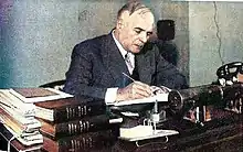 One of the main objectives of the 1942 Uruguayan coup d'état by Alfredo Baldomir was the realignment of Uruguay with the Allied Powers after decades of Axis-leaning neutrality. Baldomir used the nazi plot theory as an explicit casus belli for the coup.[4] The government did not undertake violent actions nor promoted political persecution, except for an order given by the president to surround Herrera's house with police forces as a condemnatory display.[16]