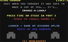 Invade-a-Load was a fast loader for cassette-based games which not only accelerated the loading of blocks from the tape, but also contained a mini-game (in this case, a clone of Space Invaders) that could be played while waiting for the main game to finish loading. This initial minigame was loaded in under a minute, providing entertainment while waiting for the actual game to load, which could take a further five to ten minutes. On at least one occasion, a reviewer expressed their preference for Invade-a-Load over the main game itself.[31] It mostly appeared in games sold in the United Kingdom, as, by the time it was written, the Commodore market in the United States had mostly switched to floppy disk media. The loader was written by Richard Aplin for Mastertronic's own use. The loader itself has a copyright date of 1987, but the first games that used the loader showed up in 1988. Over the following years, Mastertronic used the loader in dozens of titles. The loader was also memorable for the soundtrack, originally made by Rob Hubbard for the Mastertronic title One Man and His Droid.