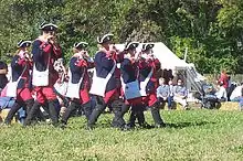 During the festival, participants reenact the annual fall gathering of the French and Native Americans which took place at Fort Ouiatenon in the mid-18th century.[5][6] Participants dress in the garb of the 18th century French soldiers, settlers, and Native Americans who lived in this region.[7][8] Food vendors sell traditional period foods such as rabbit stew, voyageur stew, and venison sausage.[6][8] The program also includes music, marching, dancing and reenacted military maneuvers.[6]