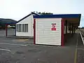 Featherston was initially a station of some importance, being the railhead for two years until the opening of the line through to Masterton. It was opened with a seven-room station building, a 60-by-30-foot (18.3 m × 9.1 m) goods shed, a locomotive shed and watering facilities for the locomotives, but no coal supply until 1888. There were also refreshment rooms, but they, along with the locomotive depot, were removed in 1891. With the closure of the engine shed, all locomotives working the southern Wairarapa district – with the exception of the locomotive working the Greytown Branch – were based at Cross Creek. The original wooden station building was replaced with the present-day structure in 1982.[5]