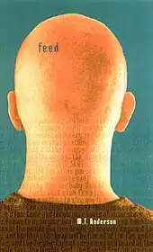 Feed (2002) is a cyberpunk, satirical, dystopian, young-adult novel by M. T. Anderson, focusing on issues such as corporate power, consumerism, information technology, data mining, and environmental decay, with a sometimes sardonic, sometimes somber tone. From the first-person perspective of a teenaged boy, the book takes place in a near-futuristic American culture completely dominated by advertising and corporate exploitation, corresponding to the enormous popularity of internetworking brain implants called feeds.