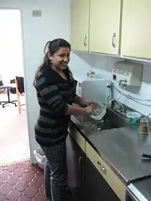 Domestic work is maintenance of the home, and is usually universally recognizable, e.g. doing the laundry. Care work is looking "after a relative or friend who needs support because of age, physical or learning disability, or illness, including mental illness;" this also includes raising children.[63] Care work also involves "close personal or emotional interaction."[64] Also included in this category is "self-care," in which leisure time and activities are included. Subsistence work is work done in order to meet basic needs, such as collecting water, but does not have market values assigned to it. Although some of these efforts "are categorized as productive activities according to the latest revision of the international System of National Accounts (SNA) ... [they] are poorly measured by most surveys."[64] Unpaid market work is "the direct contributions of unpaid family members to market work that officially belongs to another member of the household."[65] Voluntary work is usually work done for non-household members, but in return for little to no remuneration.