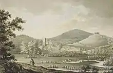 View of Bampton, with castle mound to right, painted in 1800 by Rev. John Swete (died 1821)